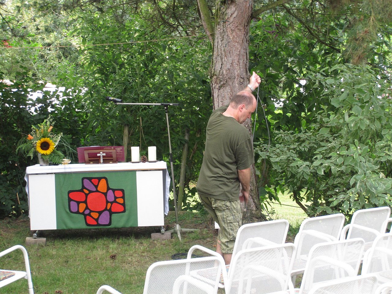 ![]() Deshalb stand am Sonntag der Altar zum ersten Mal unter den Kiefern