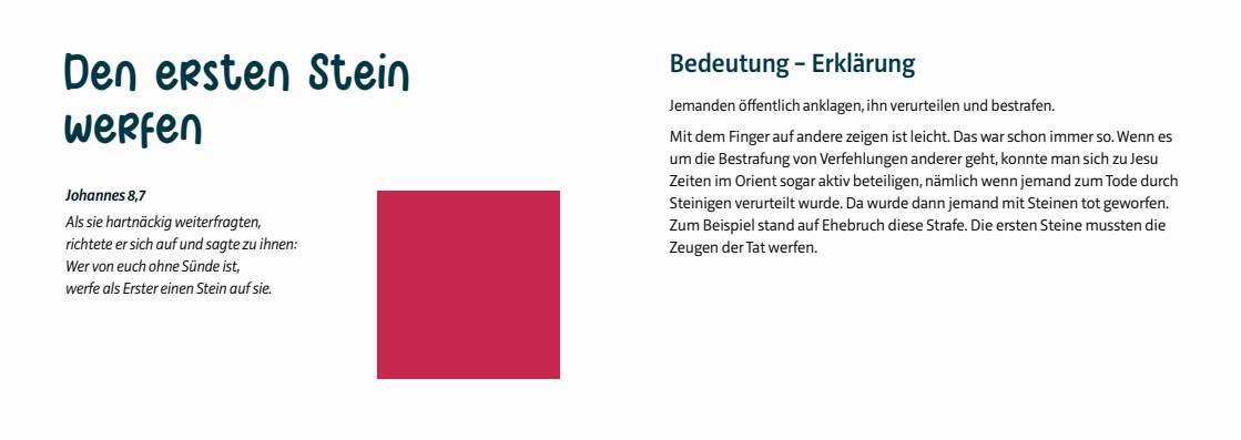 Jesus und die Ehebrecherin „Der werfe den ersten Stein“ Johannes 8,7